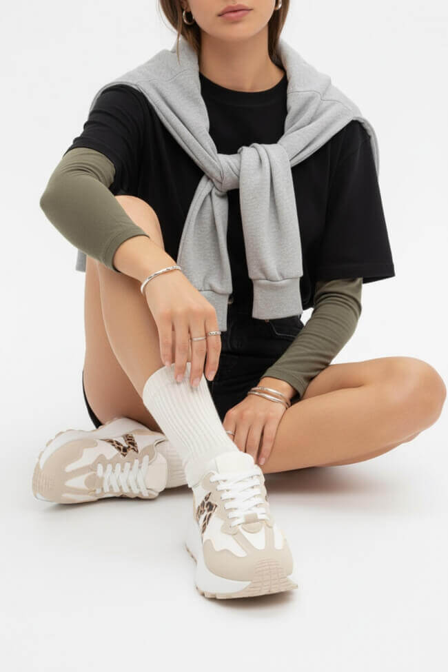 Sneakers în Combinație de Culori & Materiale