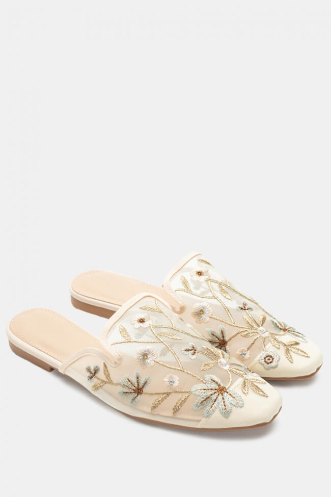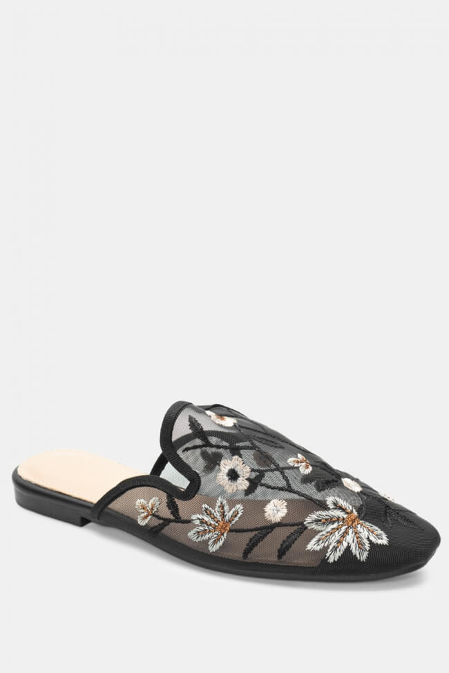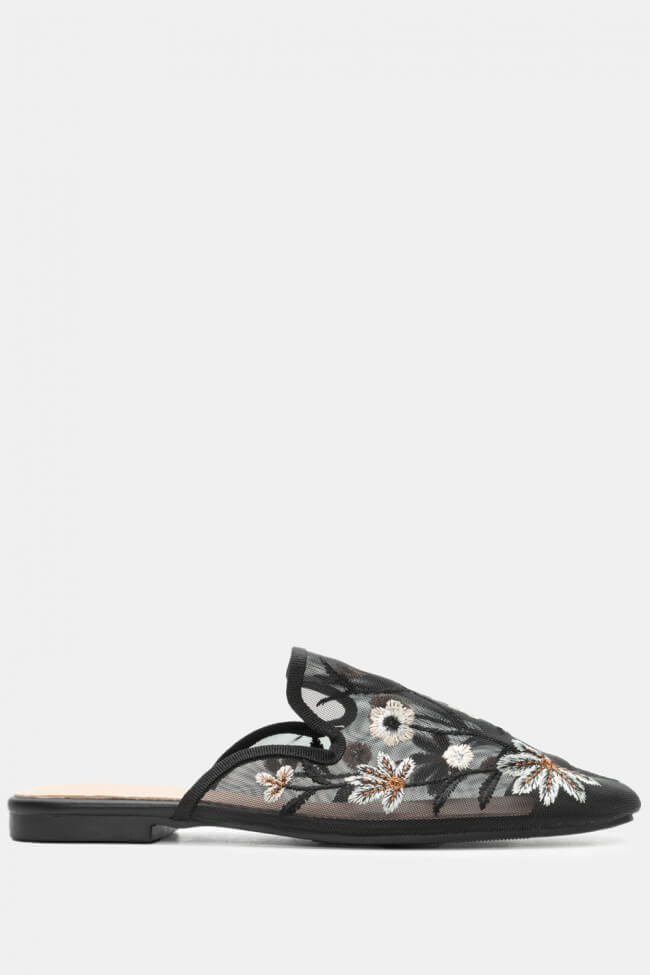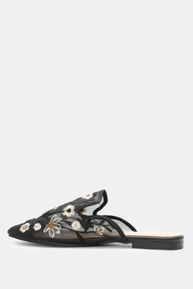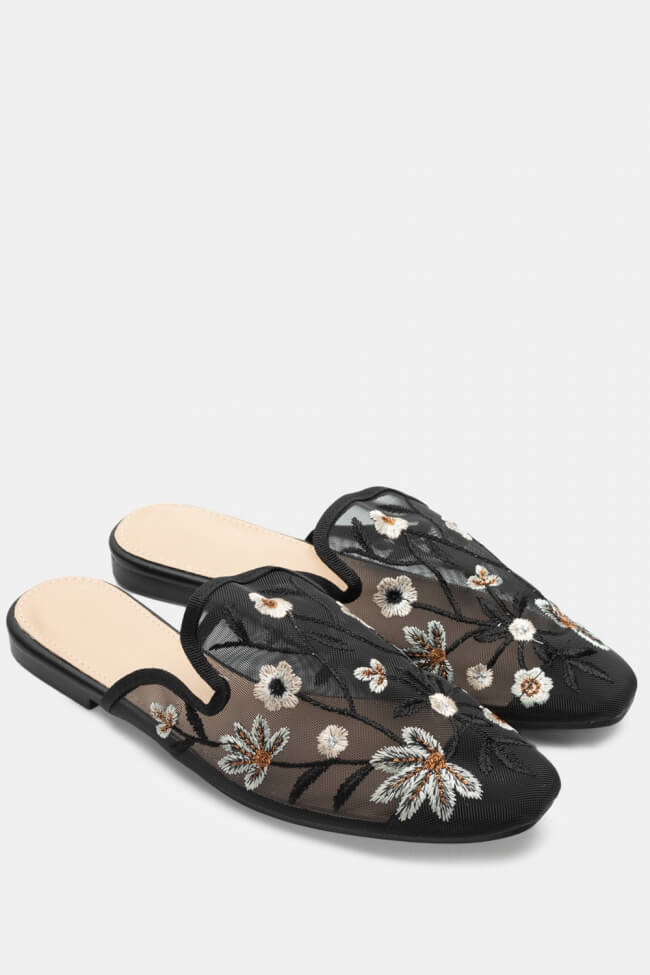 Mules Loafers με Διακοσμητικά Λουλούδια
