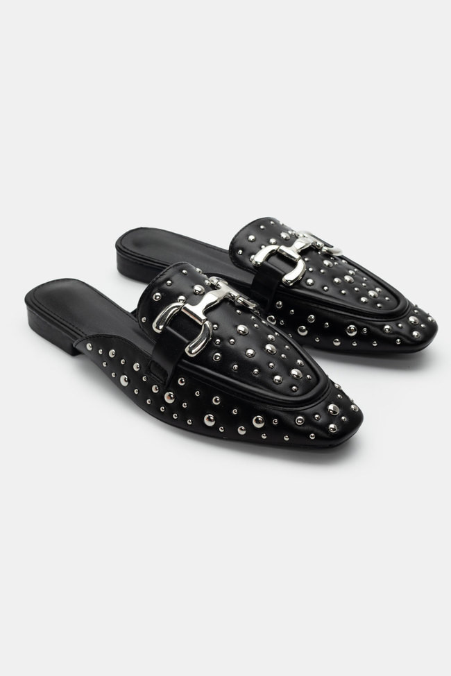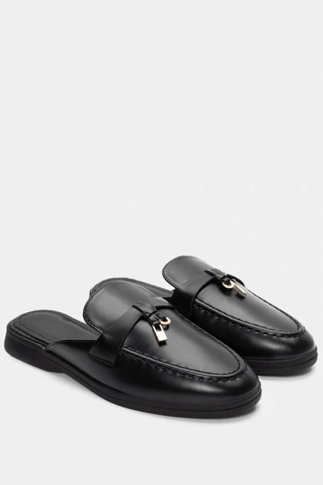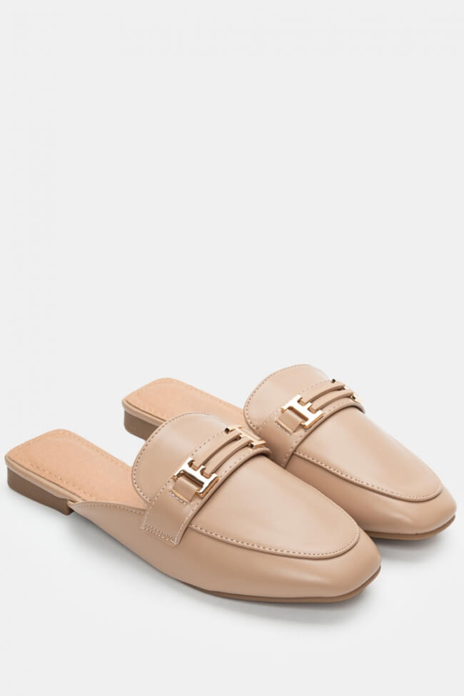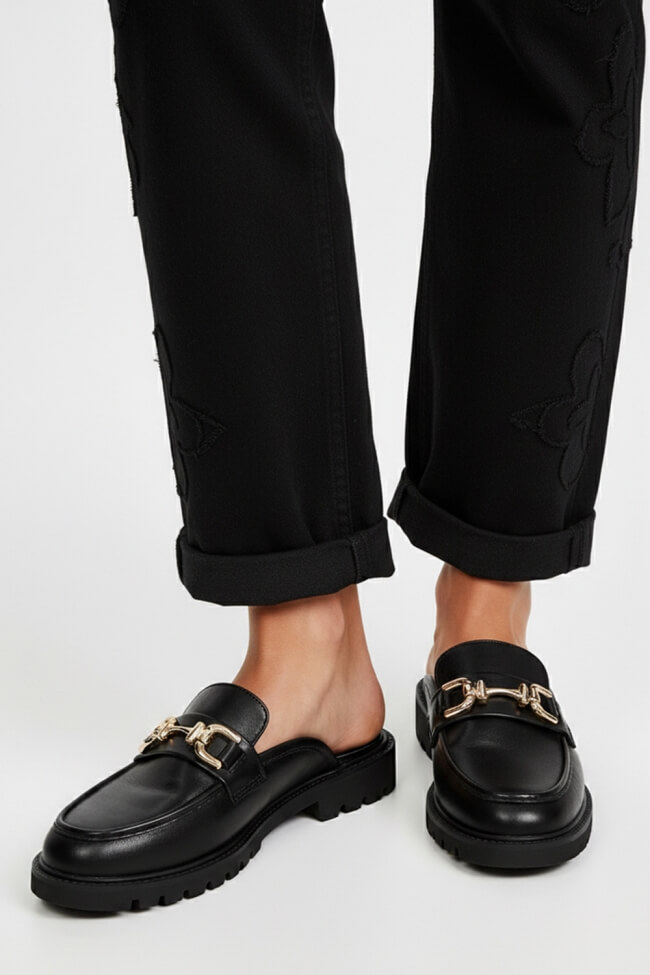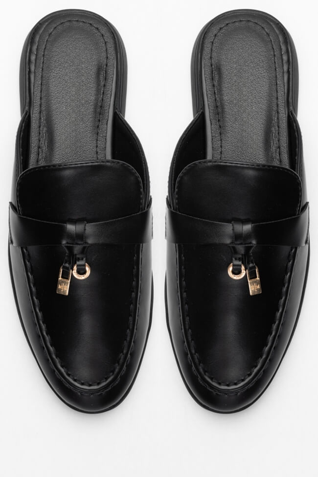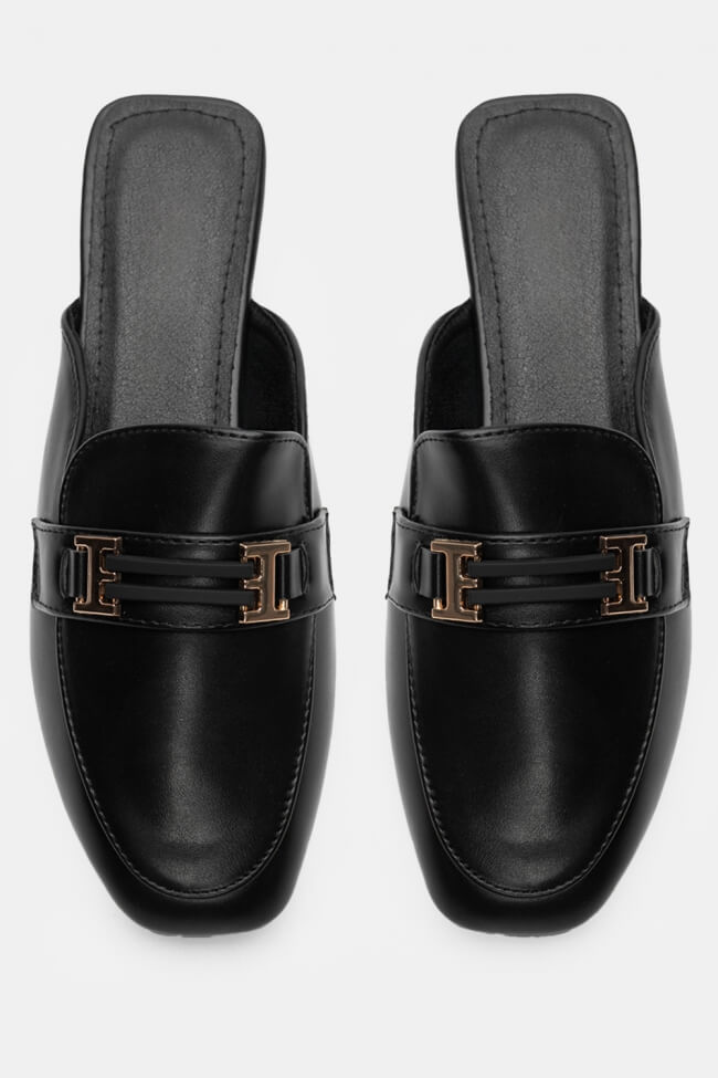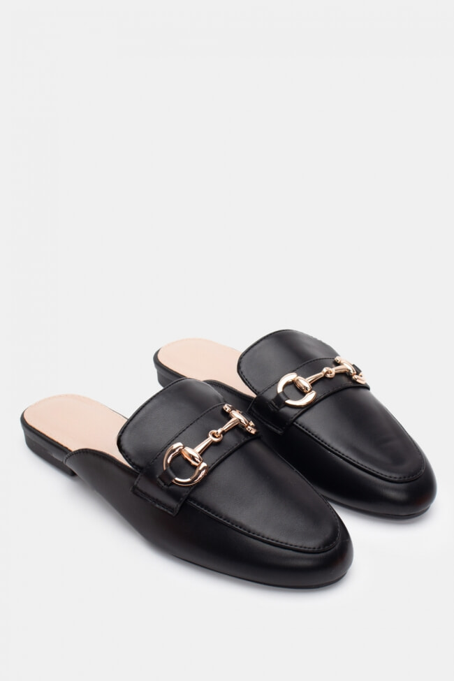 Mules Loafers με Διακοσμητικά Τρουκς & Αγκράφα