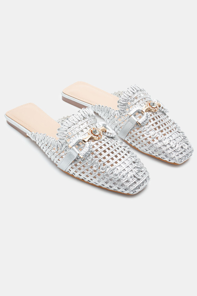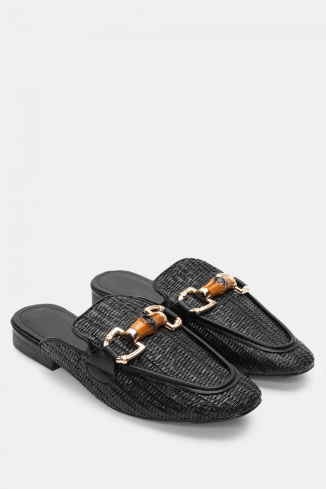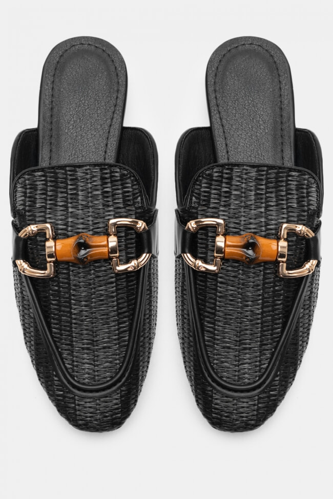 Mules με Ψάθα & Διακοσμητική Αγκράφα απο Strass