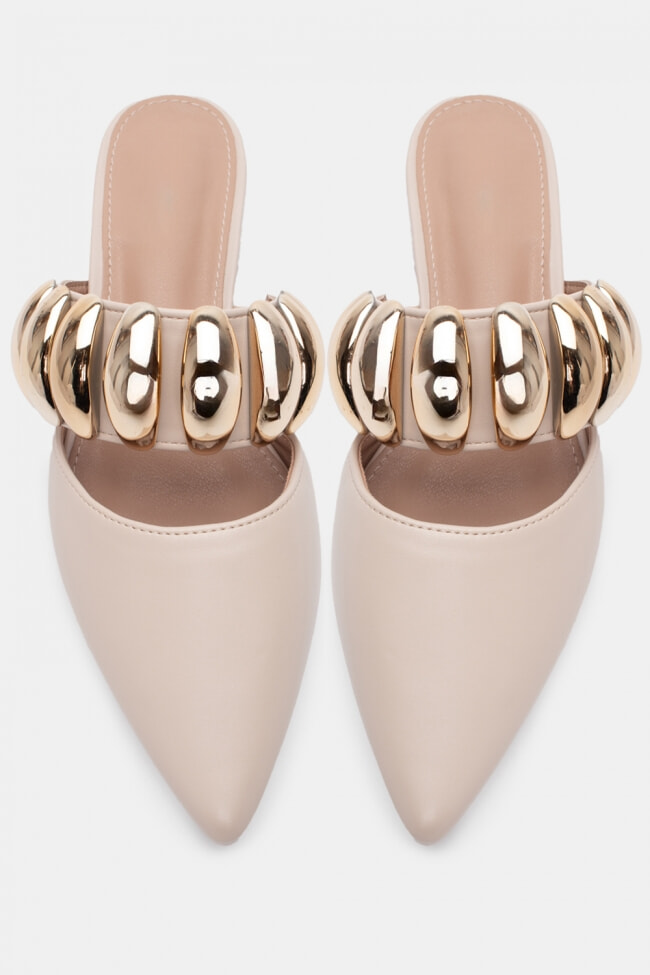 Mules Μυτερά με Χρυσή Λεπτομέρεια & Λάστιχο
