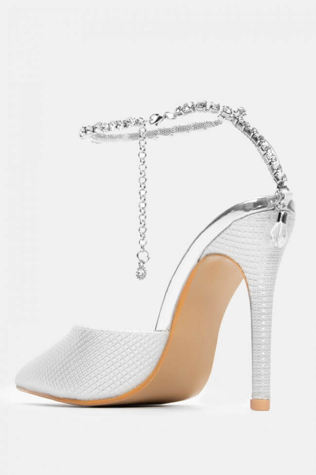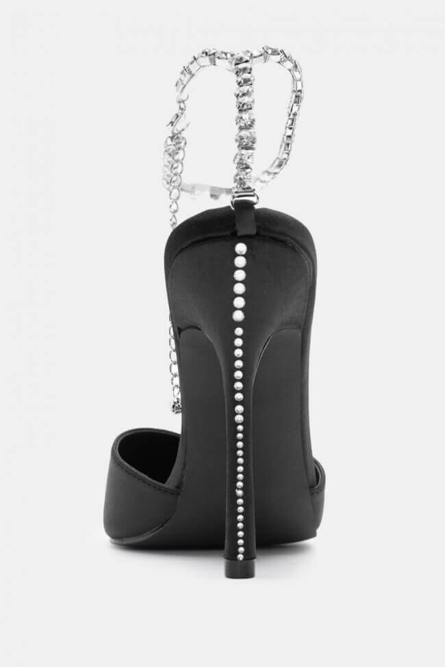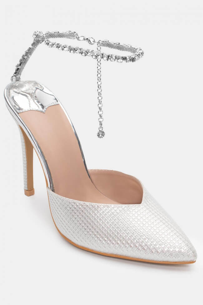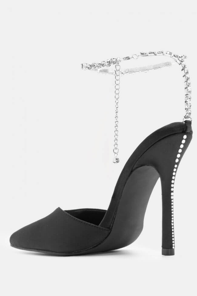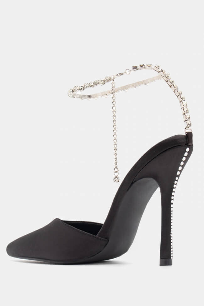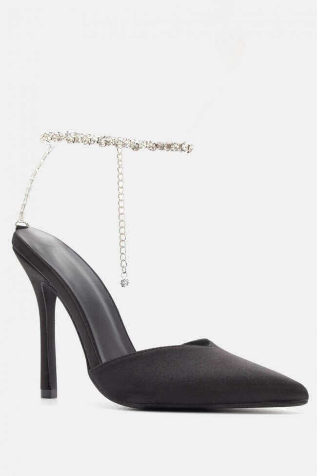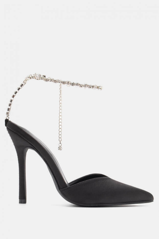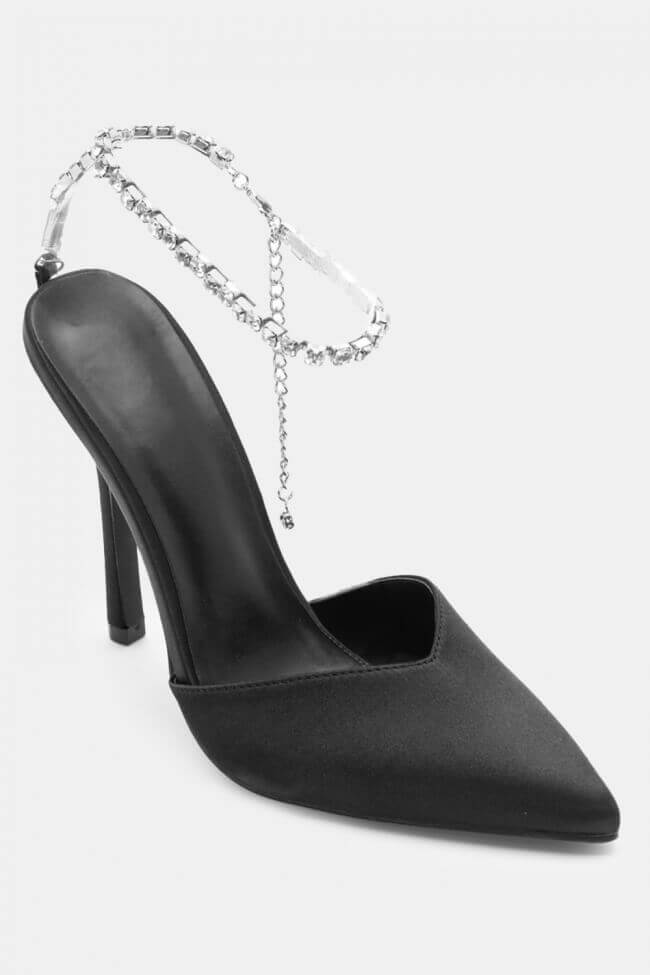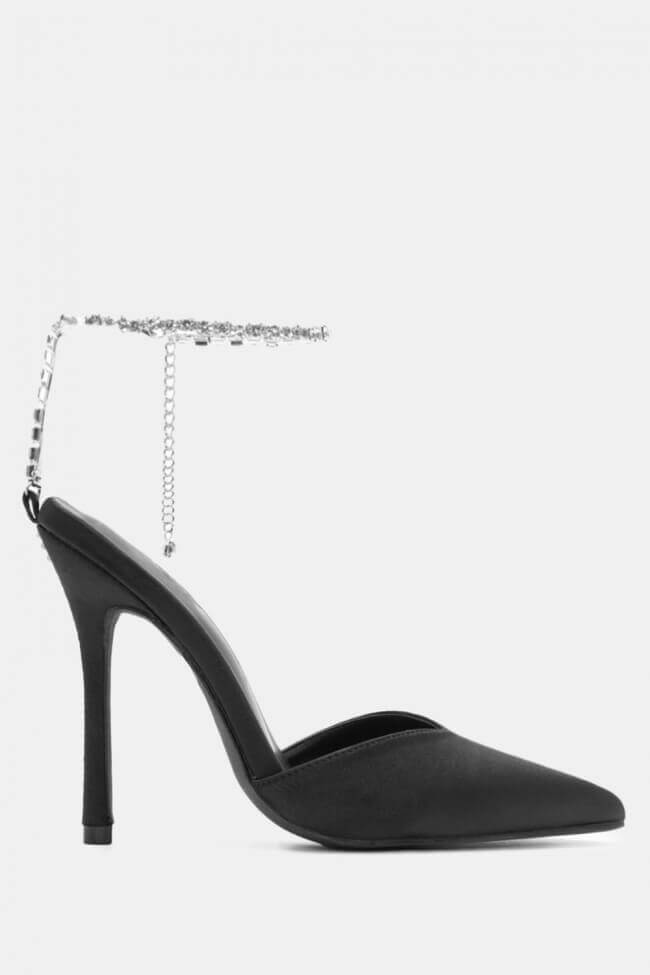 Plus, η μυτερή γραμμή τους επιμηκύνει το πόδι, δημιουργώντας μια πιο αριστοκρατική εμφάνιση, ενώ η μπαρέτα κρατάει το πόδι σταθερό όλη μέρα. Βρες τις μυτερές γόβες με στρας και διακοσμητική αλυσίδα από πέτρες και βάλ’ τες με ένα cocktail dress - περίμενε τα πιο «wow» βλέμματα.