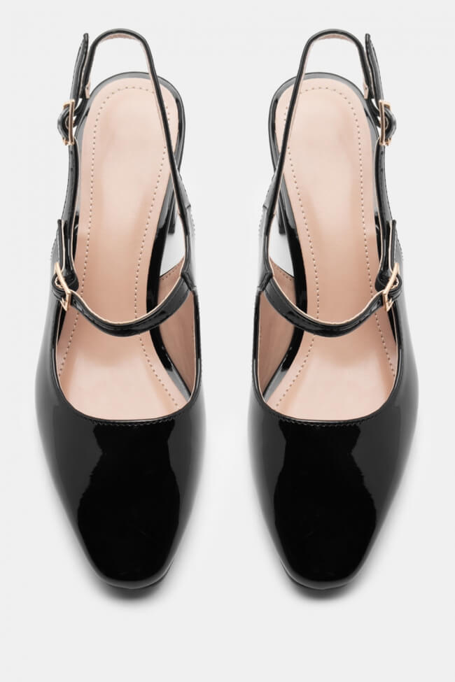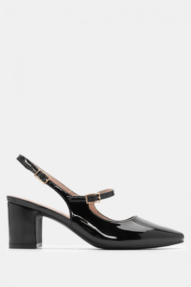- Poartă pantofi chunky pantofi cu barete din lac pentru ocazii elegante, ieșiri de seară sau chiar pentru a îmbunătăți look-ul de birou.