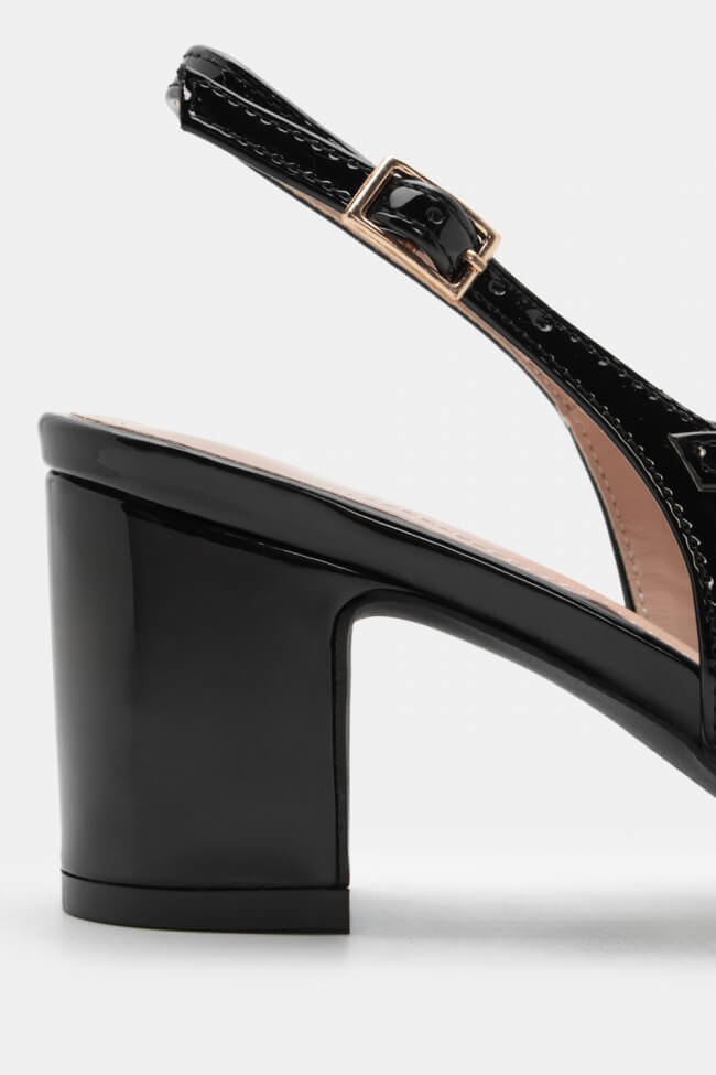 Dacă vrei să dai strălucire aparițiilor tale, aici e locul! Lacul strălucitor atrage privirile, în timp ce tocul gros oferă confort și stabilitate – cine a spus că glam-ul nu poate fi confortabil?