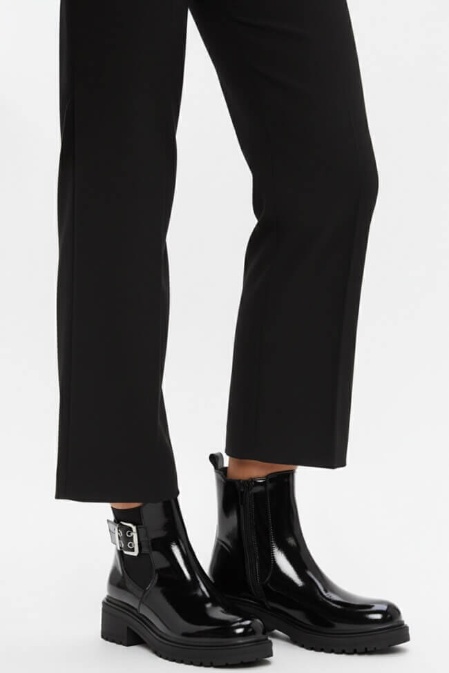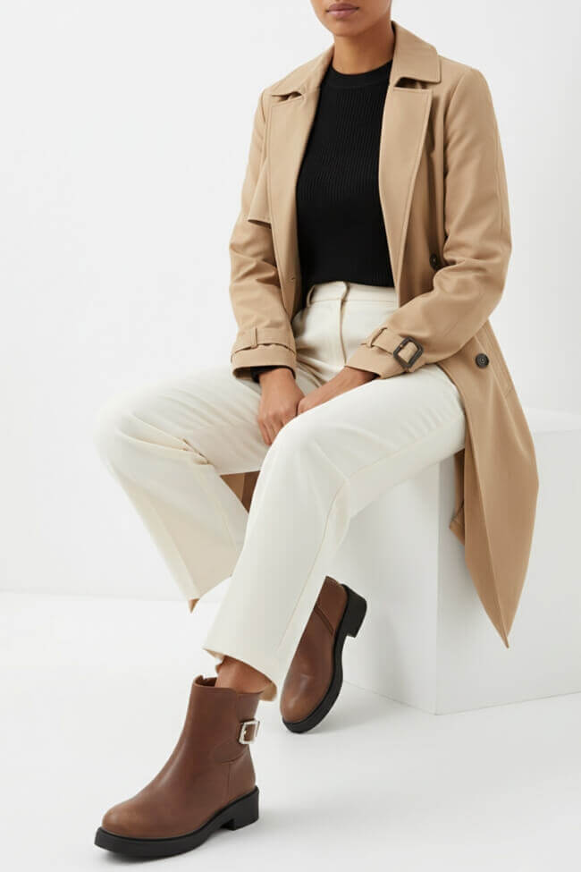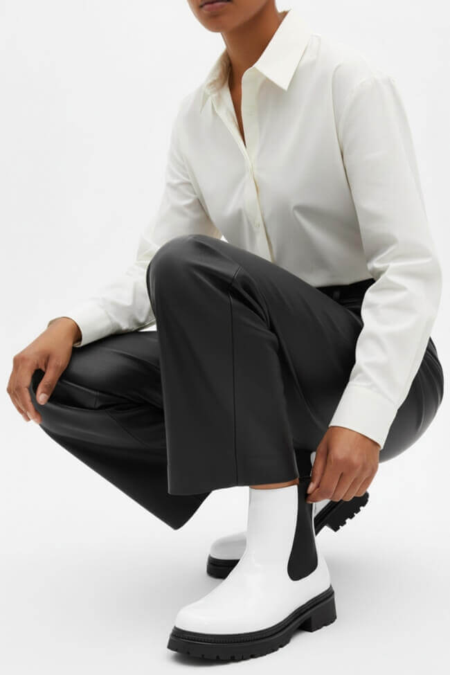 За по-официални случаи, избери замшени или лакирани ниски ботушки. Те добавят елегантност и се комбинират перфектно с midi поли или tailor-cut панталони.