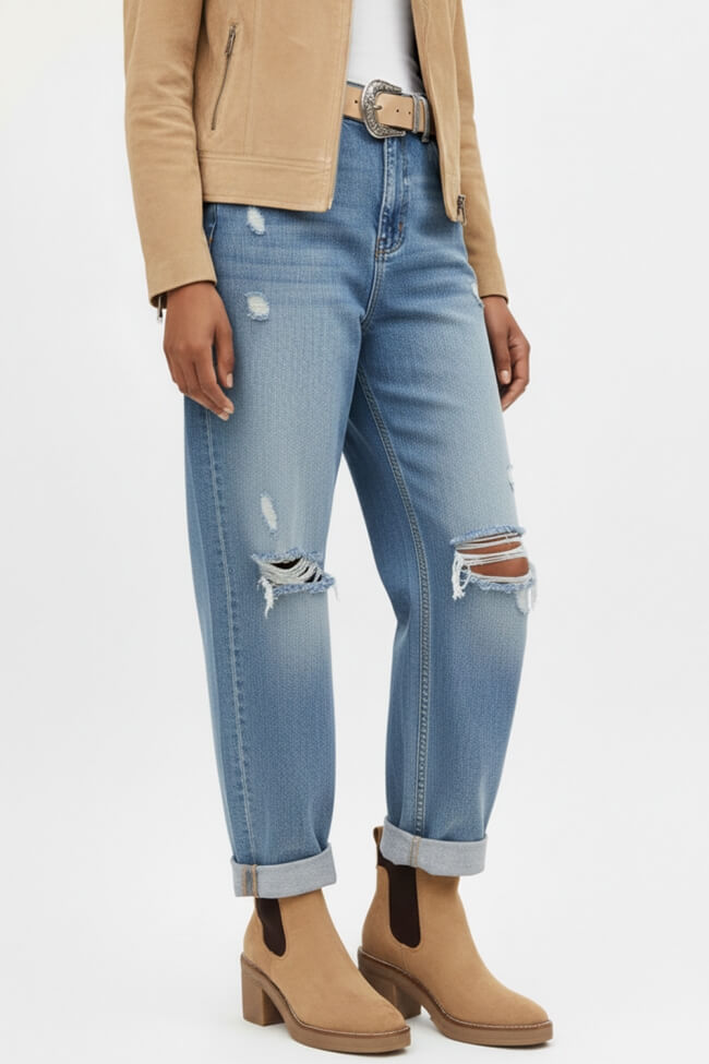Ниските ботинки се комбинират идеално с дънки от всички форми. Тесни за по-прилепнали визии или boyfriend и cropped за по-удобен и стилен изглед.