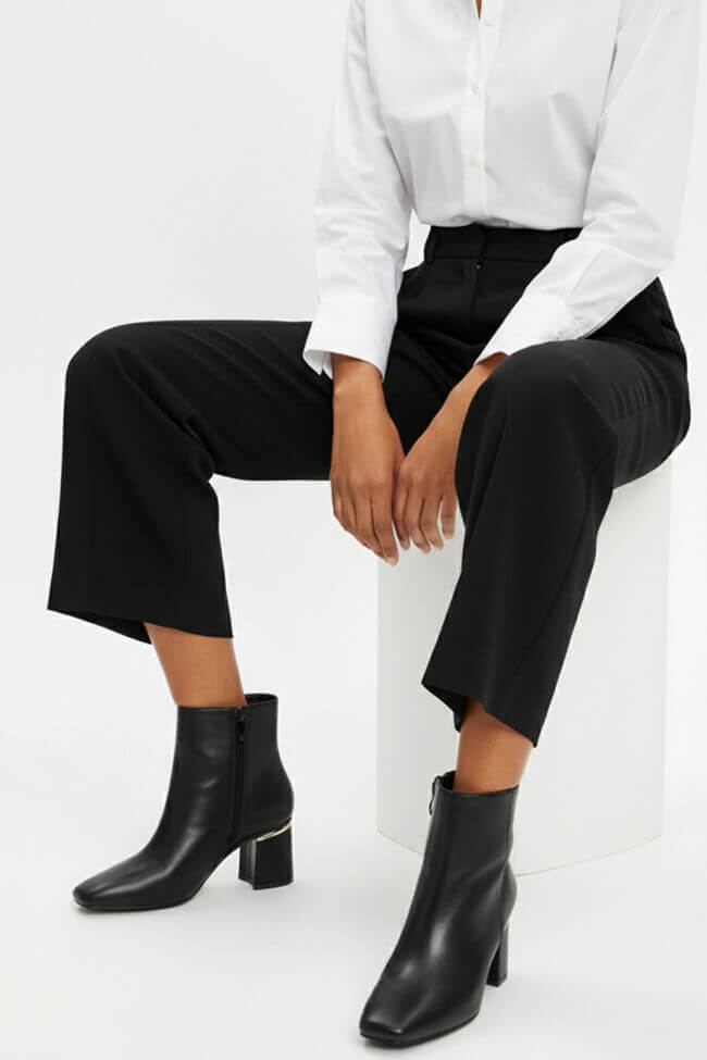 Ако имаш висок силует, опитай ботинки ankle boots, за да запазиш пропорциите си и да създадеш баланс. За най-ниските в групата, ботите с лек ток, в сравнение с плоските ботушки, добавят онова допълнително височина без да губиш комфорт. Предпочитай едноцветни комбинации или панталони с кроп дължина, за да удължиш силуета си.