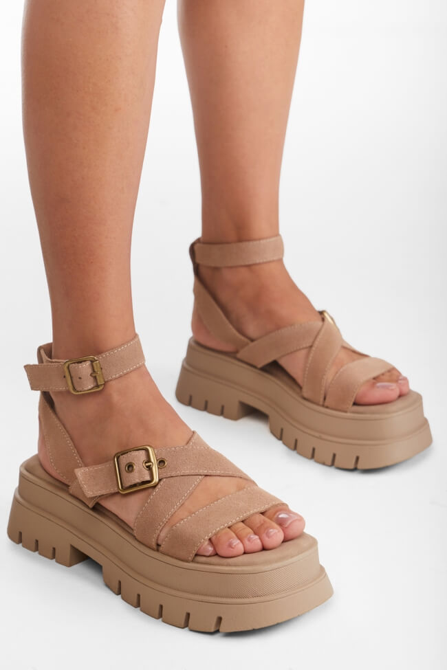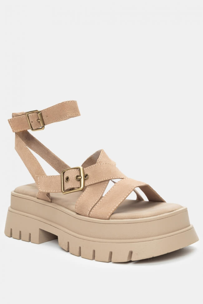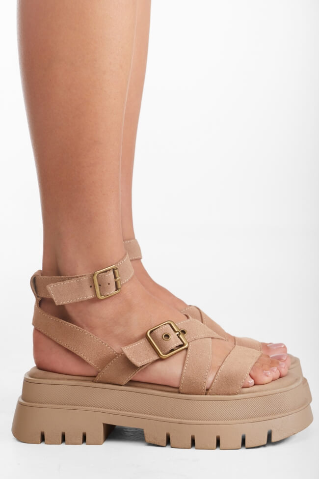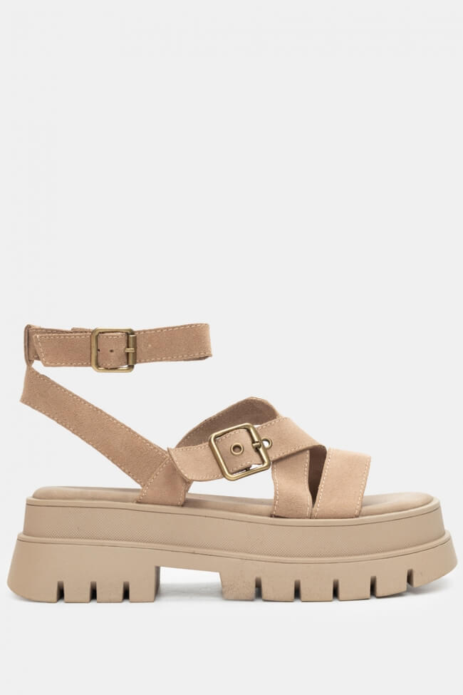 Flatform Sandals with Crossed Straps & Buckle