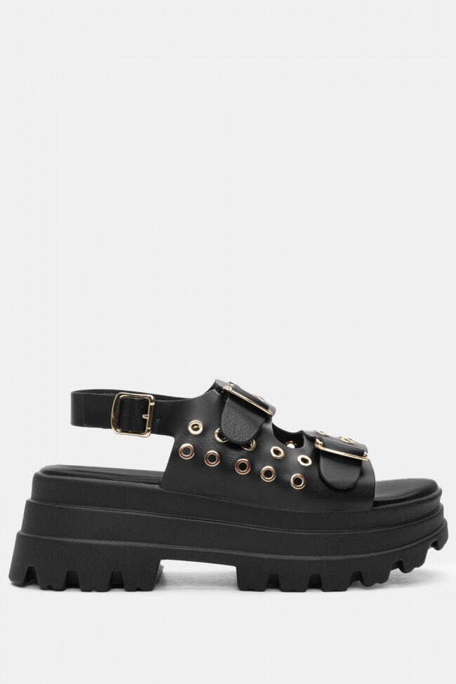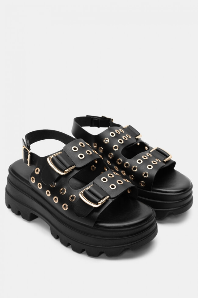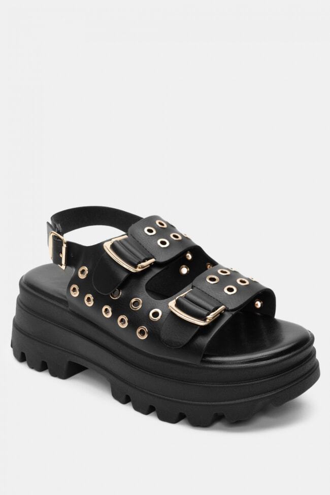 Flatform Sandals with Buckles & Studs