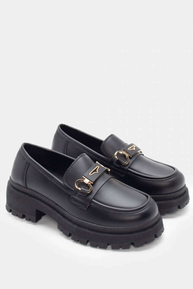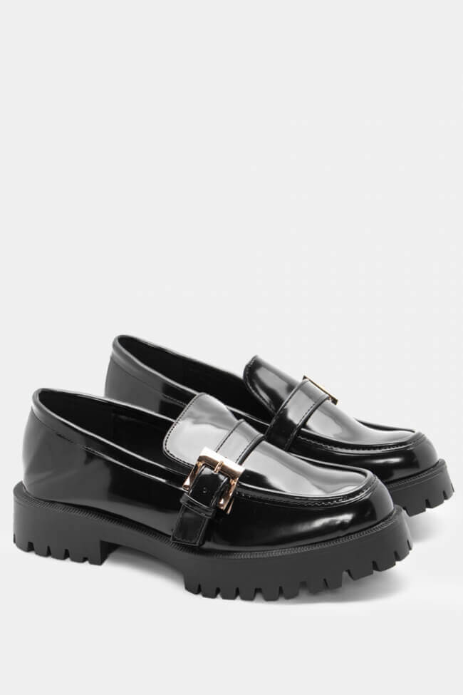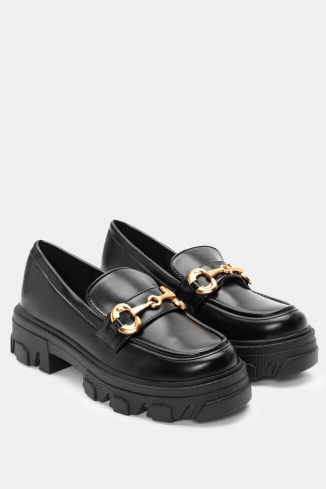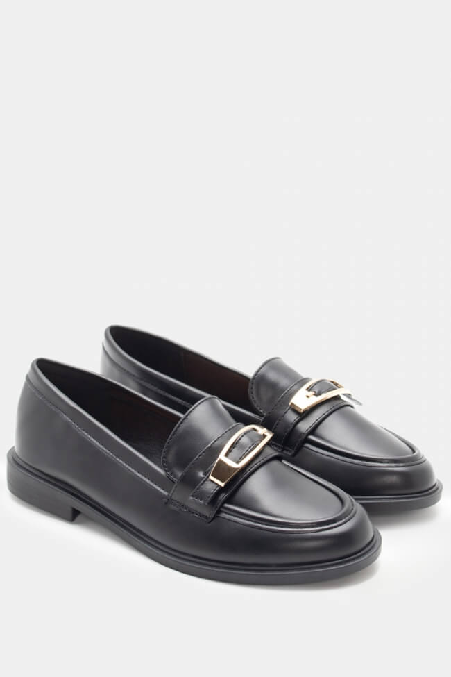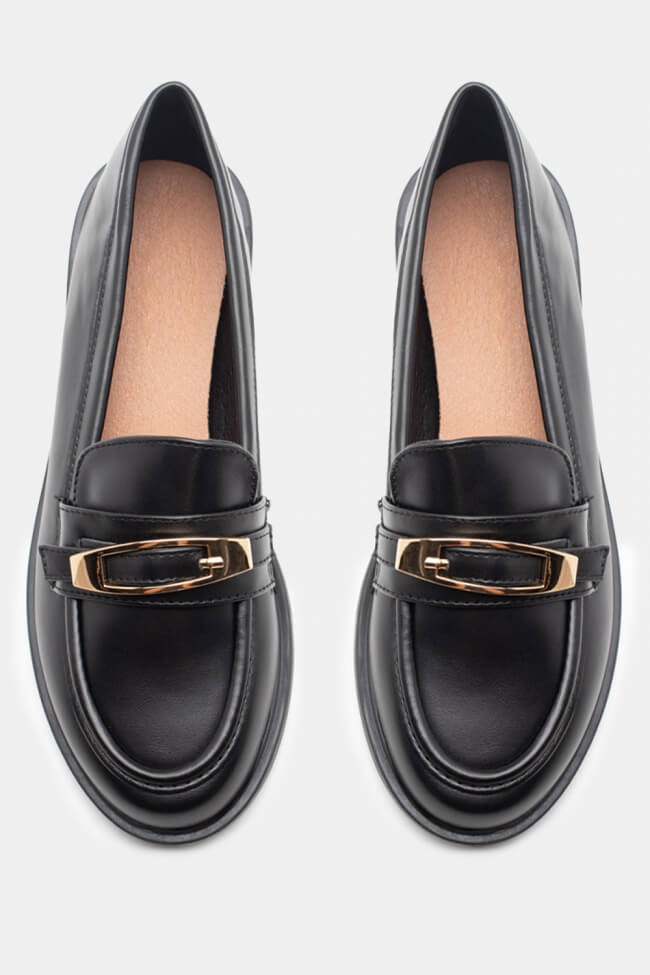 Мокасини с оребрена подметка и декоративна катарама