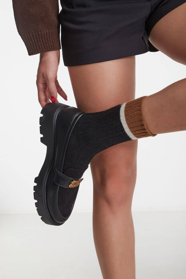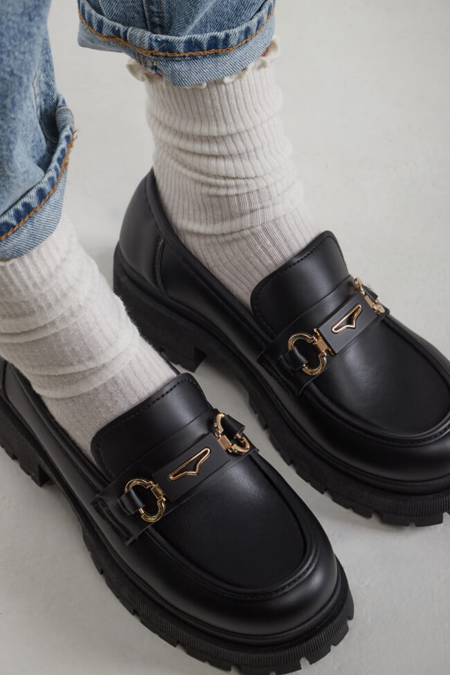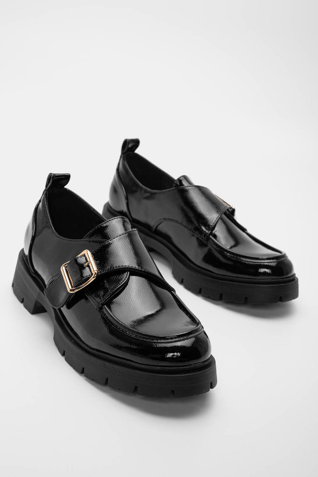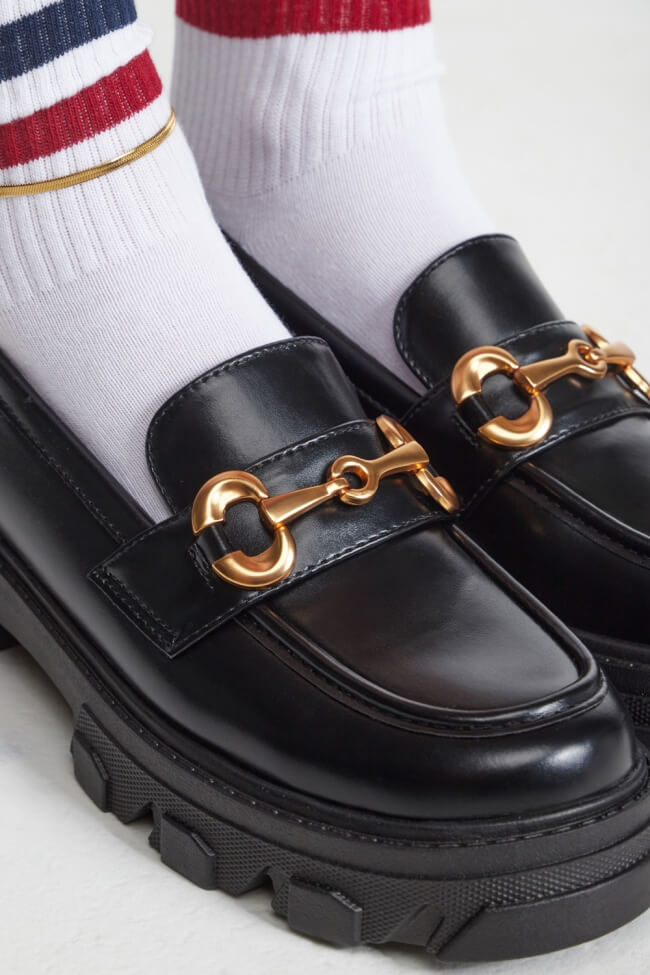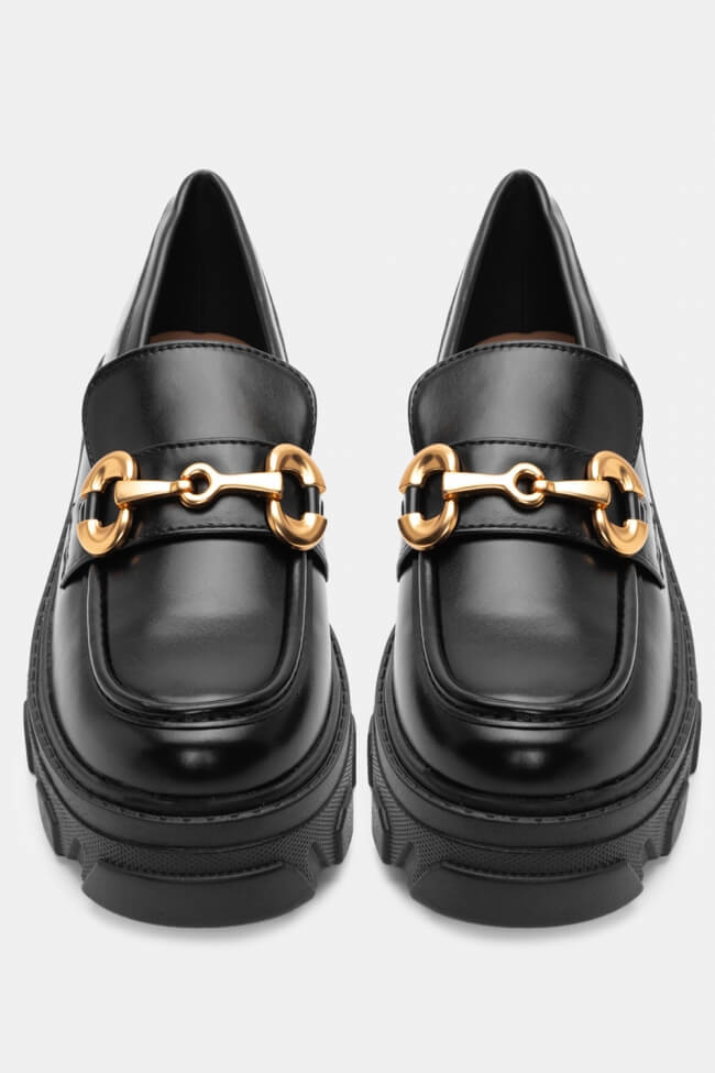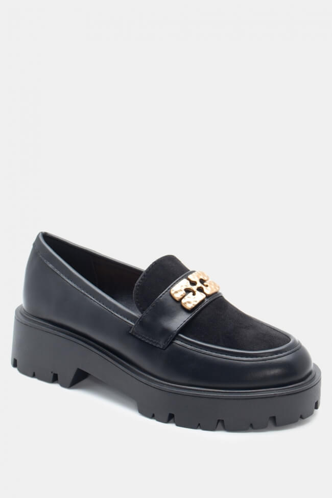 Мокасини с оребрена подметка и декоративна катарама