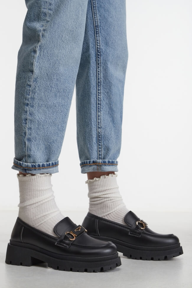 Избери високи лоуфъри с метални детайли или в специални текстури като велур или лак, и ги носи с макси прилепнала рокля или мини пола за един сламен резултат.