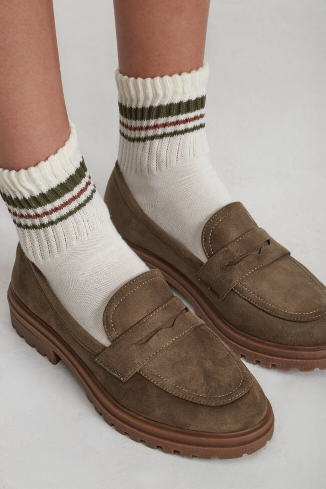 С midi пола: Създай женствен вид, като комбинираш лоуфърите си с midi пола и лек пуловер в есенни цветове.