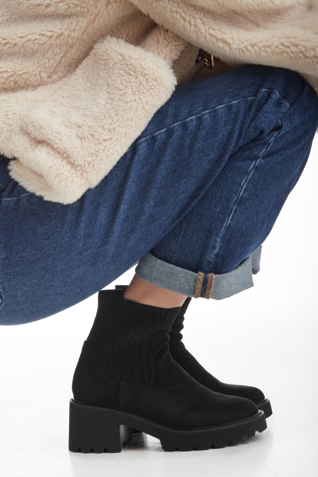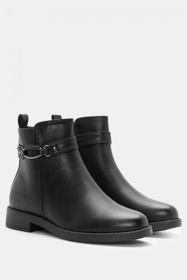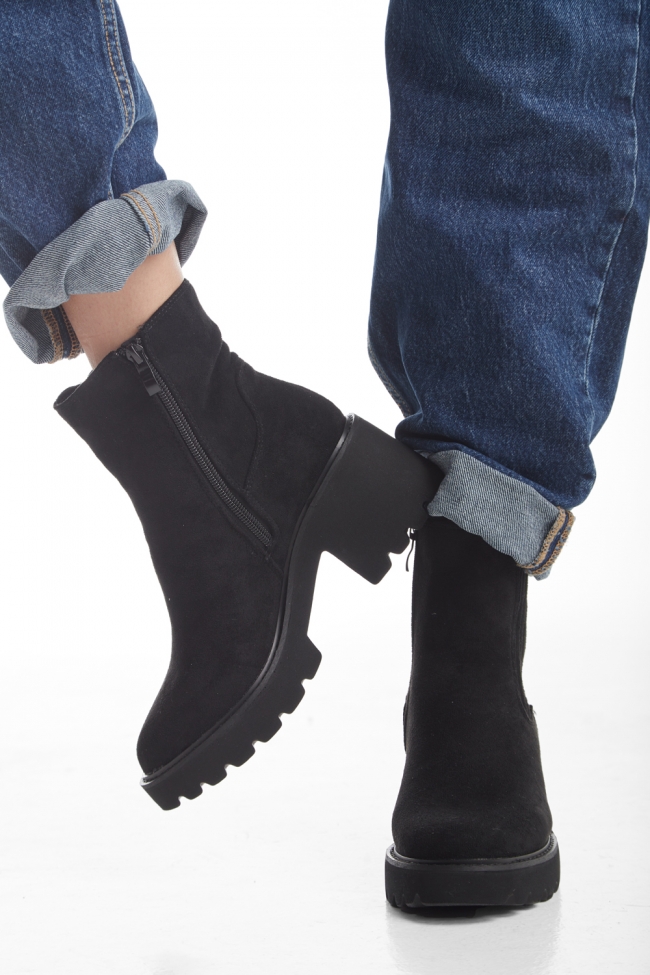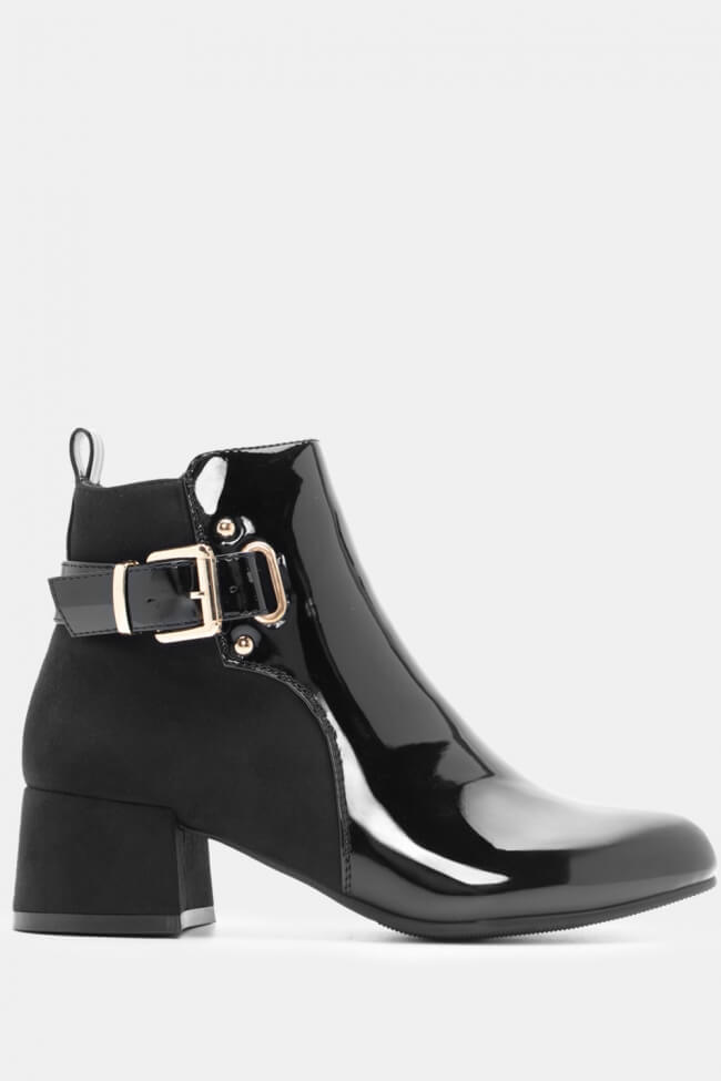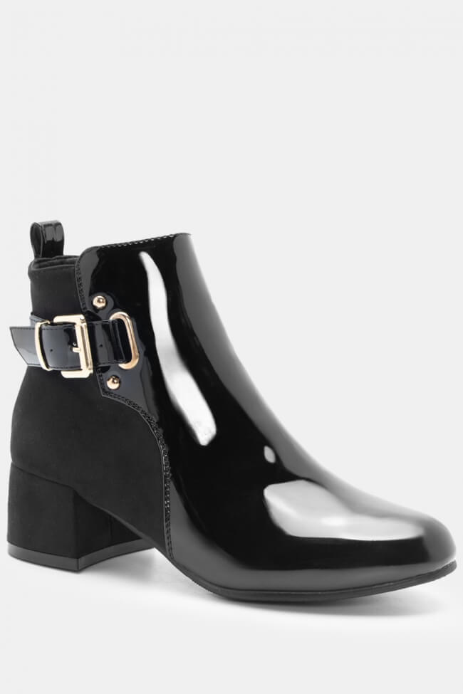 Ботуши до глезена в комбинация от материали & Декоративна каишка