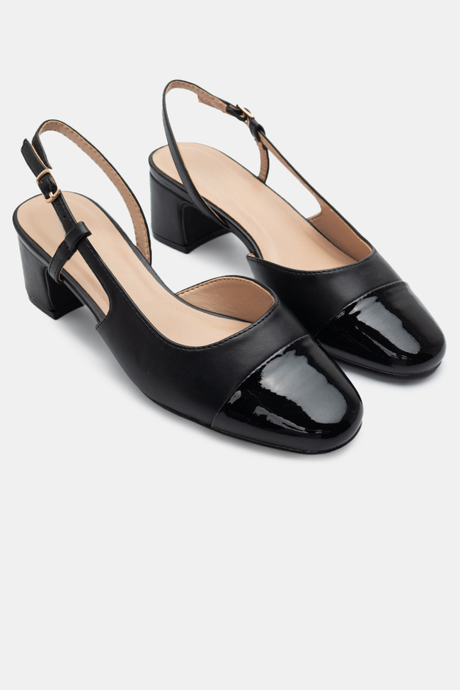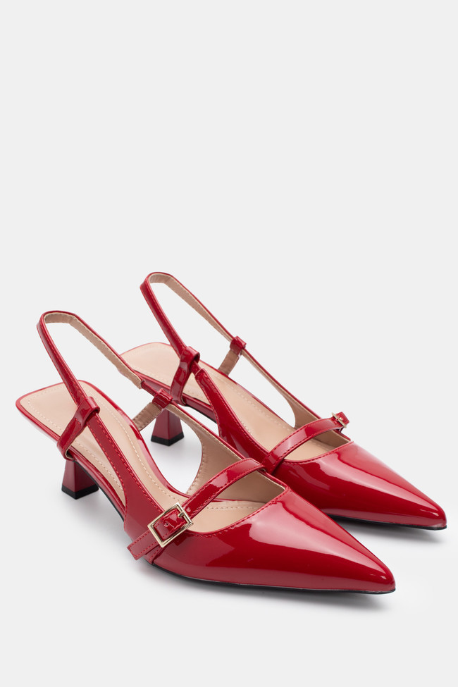 Γόβες Μυτερές Open Heel με Διακοσμητική Τόκα