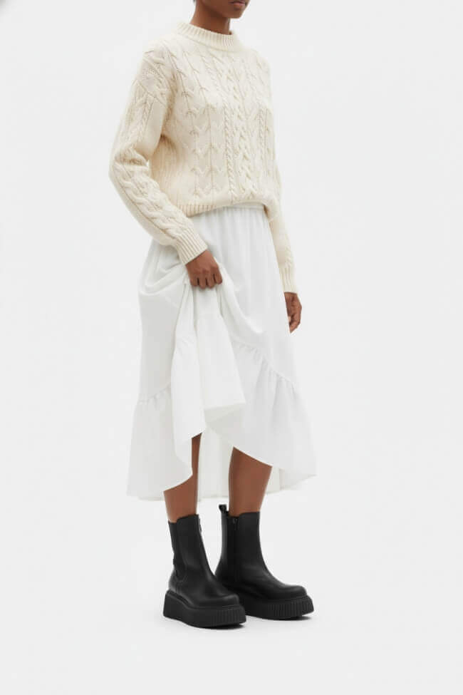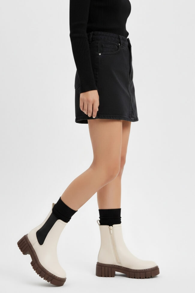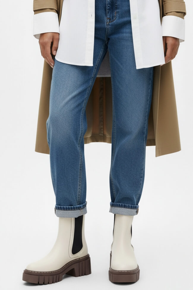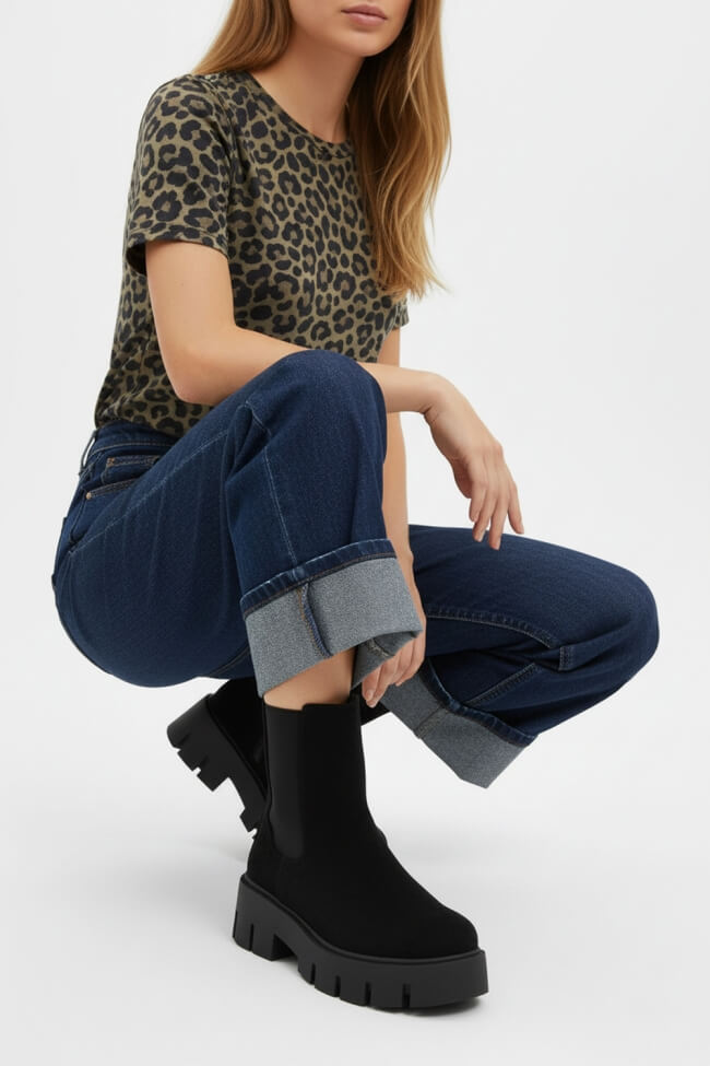 - Casual Cool: Комбинирай ги двойни боти с любимите си дънки и oversized суичър или пуловер, за да създадеш перфектния streetwear вид. Ако искаш нещо по-женствено, пробвай сако и basic топ – толкова семпло, но толкова стилно!