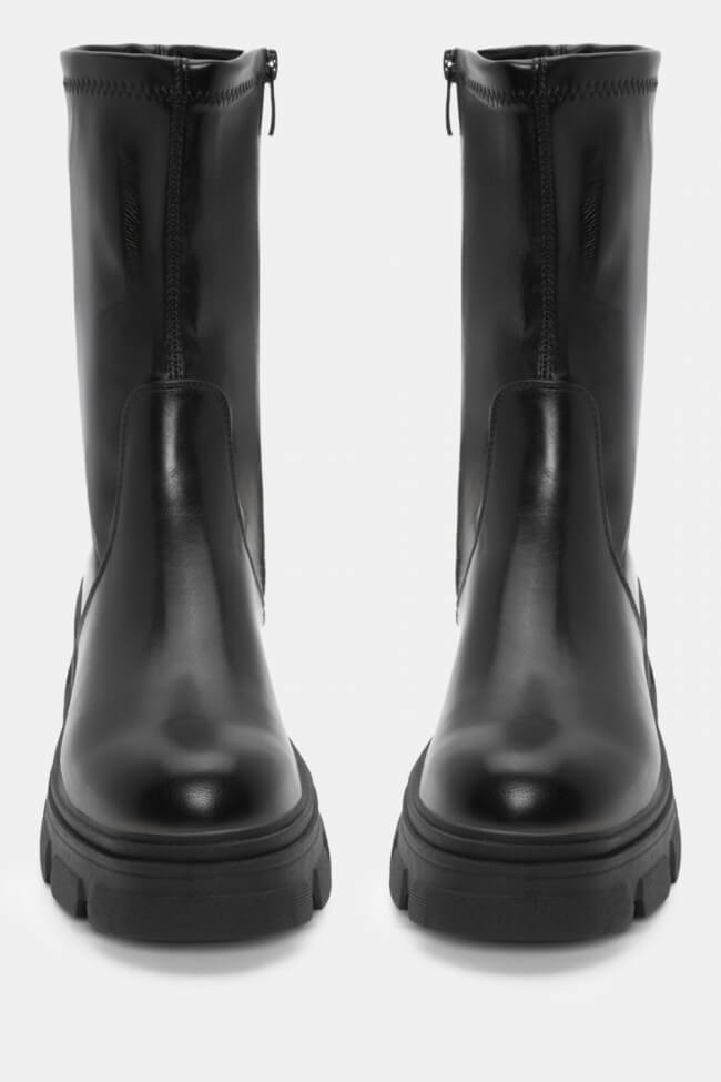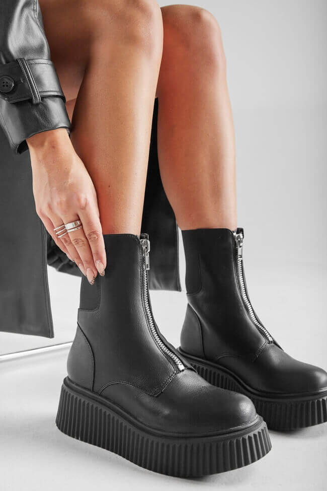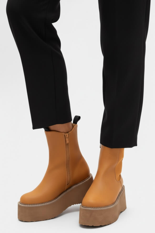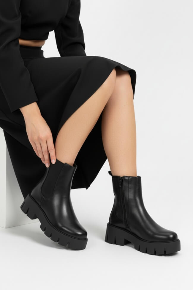 - Chic Office Vibes: Двойните боти с ток могат да те съпътстват и в офиса! Комбинирай ги с елегантни панталони и сако за power look, който не прави компромиси с комфорта или стила. Черните кожени боти с двойна подметка ще изглеждат супер елегантно с класически костюм.