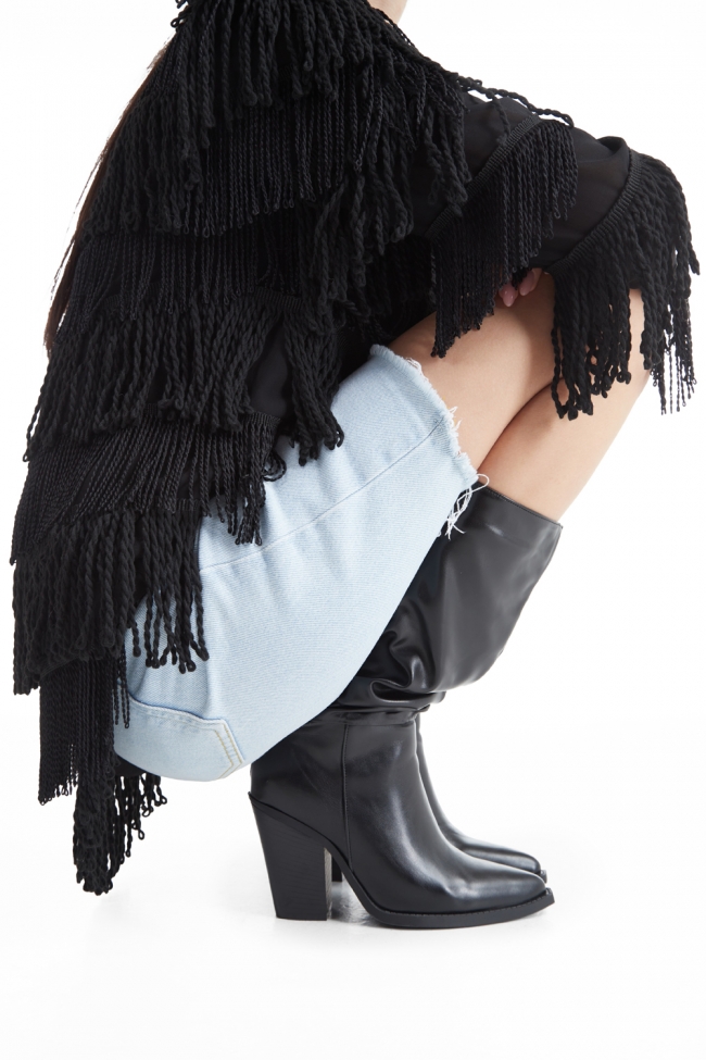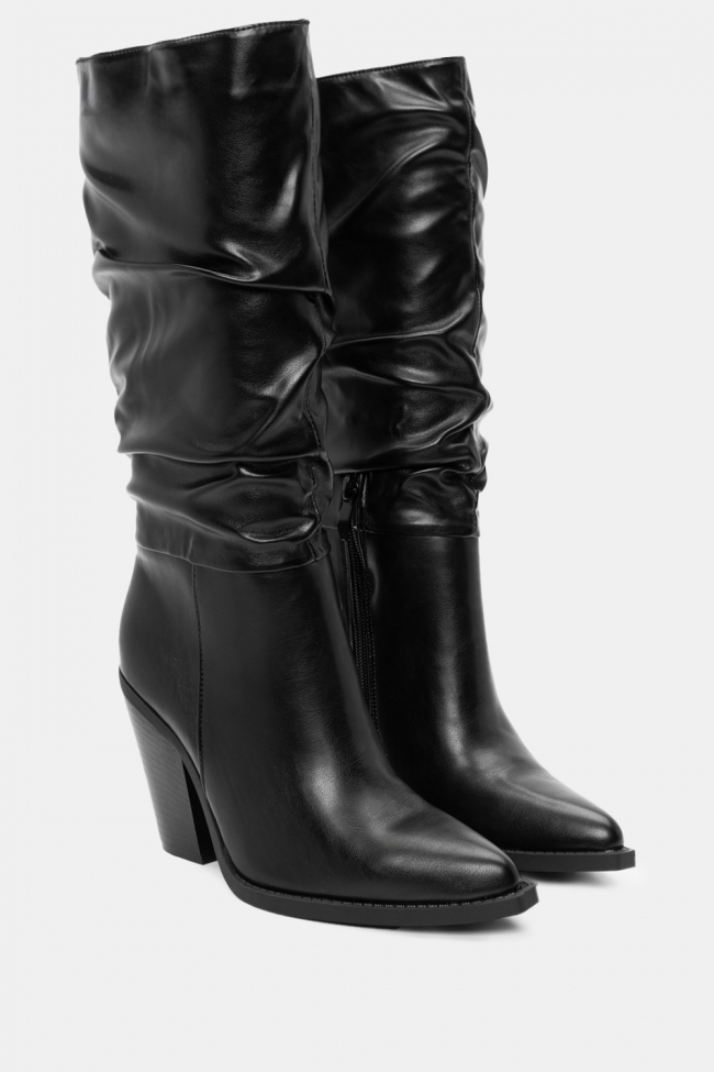 Cowboy Boots with Foldable Panel Effect & Embroidery