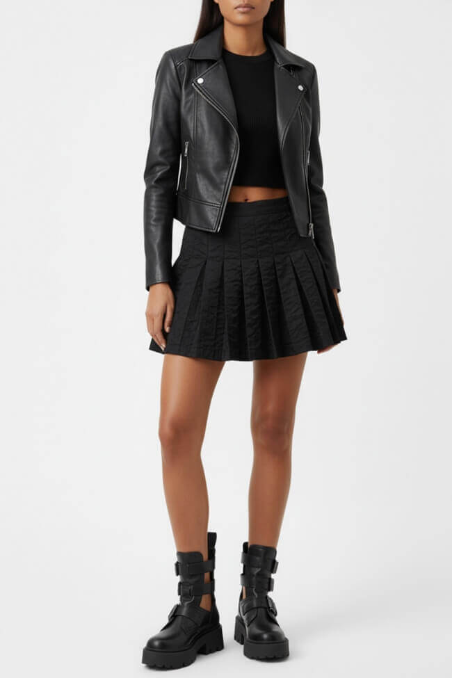 - Με μίνι φούστα και δερμάτινο τζάκετ: Εδώ τα biker μποτάκια γυναικεία απογειώνουν το στιλ σου. Διάλεξε μια μίνι φούστα, συνδύασέ τη με ένα δερμάτινο τζάκετ και δες πώς αμέσως το outfit σου γίνεται πιο rock chic.